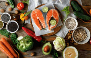 • Omega-3: Pescados azules, nueces, semillas de lino.